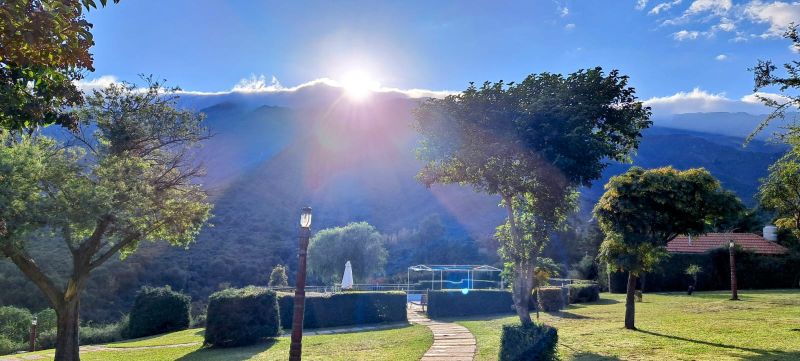 El predio y la cabaña son hermosos. Vista franca a las sierras y al valle, realmente inmejorable ubicación. Alexis fue muy cordial y amistoso todo el tiempo, asegurándose de que nuestra estadía fuera ideal. Recomiendo 100 % para descansar y estar cerca del centro sin el tráfico. De hecho nos quedamos un día entero en la pileta leyendo mirando el paisaje. Realmente hermoso!